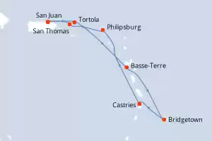 Itinerario : San Juan, Tortola, Basse-Terre (Guadalupe), Bridgetown, Castries, Philipsburg, San Thomas, San Juan