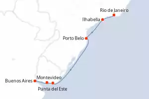 Itinerario : Rio de Janeiro, Ilhabella, Porto Belo, Punta del Este, Montevideo, Buenos Aires, Rio de Janeiro, Ilhabella, Porto Belo, Punta del Este, Montevideo, Buenos Aires