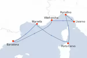 Itinerario : Barcelona, Marsella, Porto Cervo, Portofino, Livorno, Villefranche, Barcelona