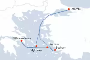 Itinerario : El Pireo Atenas, Patmos, Estambul, Bodrum, Mykonos, El Pireo Atenas