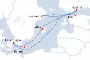 Itinerario : Copenhague, Helsinki, Estocolmo, Tallin, Visby, Ronne, Copenhague