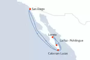 Itinerario : San Diego, Cabo san Lucas, La Paz - Pichilingue, Loreto, San Diego