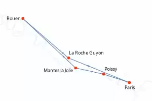 Itinerario : Paris, La Roche Guyon, Rouen, Mantes la Jolie, Poissy, Paris