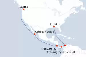 Itinerario : Mobile, Cartagena de Indias, Crossing Panama canal, Puntarenas, Cabo san Lucas, Seattle