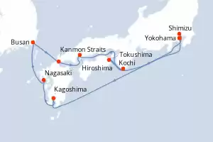 Itinerario : Yokohama, Beppu, Hiroshima, Kanmon Straits, Busan, Nagasaki, , Kochi, Kobe, Yokohama