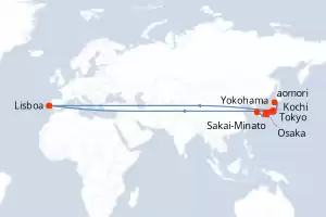 Itinerario : Lisboa, Tokyo, Yokohama, Tokyo, aomori, Sakai-Minato, Busan, Kochi, Tokushima, Osaka, Shimizu, Tokyo, Yokohama, Tokyo, Lisboa