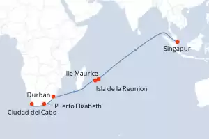 Itinerario : Singapur, Ile Maurice, Isla de la Reunion, Durban, Puerto Elizabeth, Ciudad del Cabo