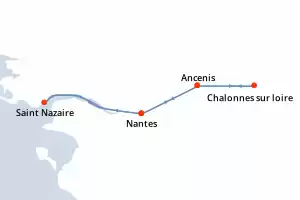 Itinerario : Nantes, Saint Nazaire, Nantes, Ancenis, Chalonnes sur loire, Nantes