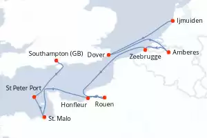 Itinerario : Ijmuiden, Dover, Amberes, Zeebrugge, Rouen, Honfleur, St. Malo, St Peter Port, Southampton