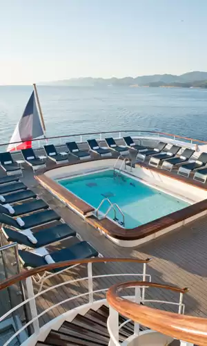 Le Ponant es un yate de tres mástiles propiedad de la compañía francesa Ponant, con capacidad para 32 pasajeros en 16 espaciosas suites. Renovado en 2022, este tradicional yate francés de lujo ofrece una excepcional proporción de un miembro de la tripulación por cada pasajero. Le Ponant cuenta con una cubierta para tomar el sol, un puerto deportivo con 2 kayaks de fondo transparente y una piscina natural, así como una zona de bienestar y fitness. También hay un refinado salón y un restaurante panorámico que sirve una excepcional cocina gourmet que combina sabores locales e internacionales con ingredientes frescos comprados directamente en los puertos de escala.
