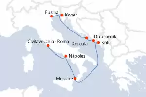 Itinerario : Civitavecchia - Roma, Nápoles, Messine, Kotor, Dubrovnik, Korcula, Koper, Fusina